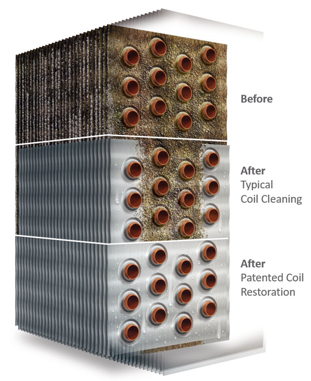 • Dirty coils operate well below design performance parameters, this will affect performance and increase energy costs.
